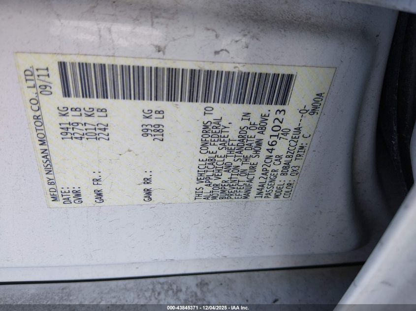 2012 NISSAN ALTIMA 2012 року Бензин, 2.5, Передний привод, vin - 1N4AL2AP2CN461023 из США