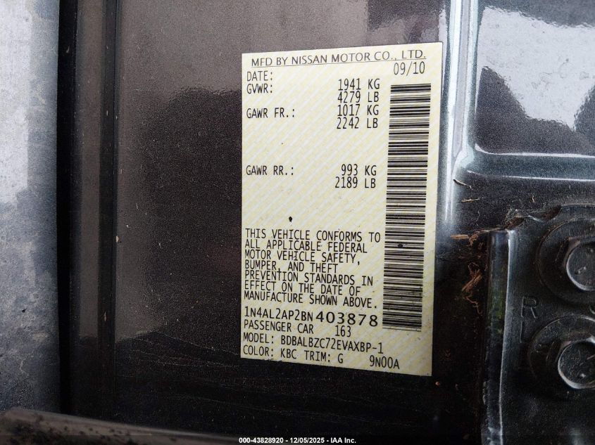 2011 NISSAN ALTIMA 2011 року Бензин, 2.5, Передний привод, vin - 1N4AL2AP2BN403878 из США