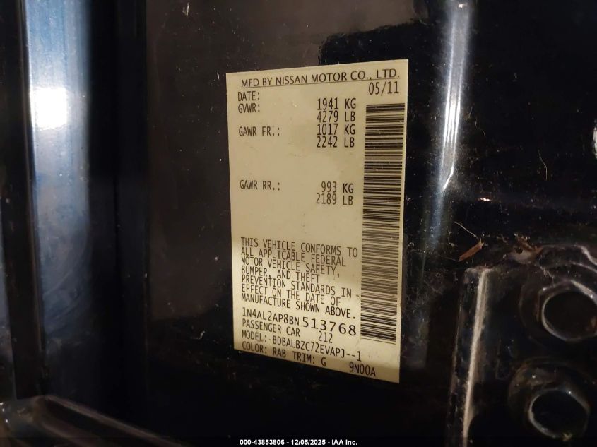 2011 NISSAN ALTIMA 2011 року Бензин, 2.5, Передний привод, vin - 1N4AL2AP8BN513768 из США