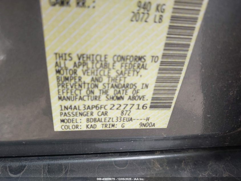 2015 NISSAN ALTIMA 2015 року Бензин, 2.5, Передний привод, vin - 1N4AL3AP6FC227716 из США