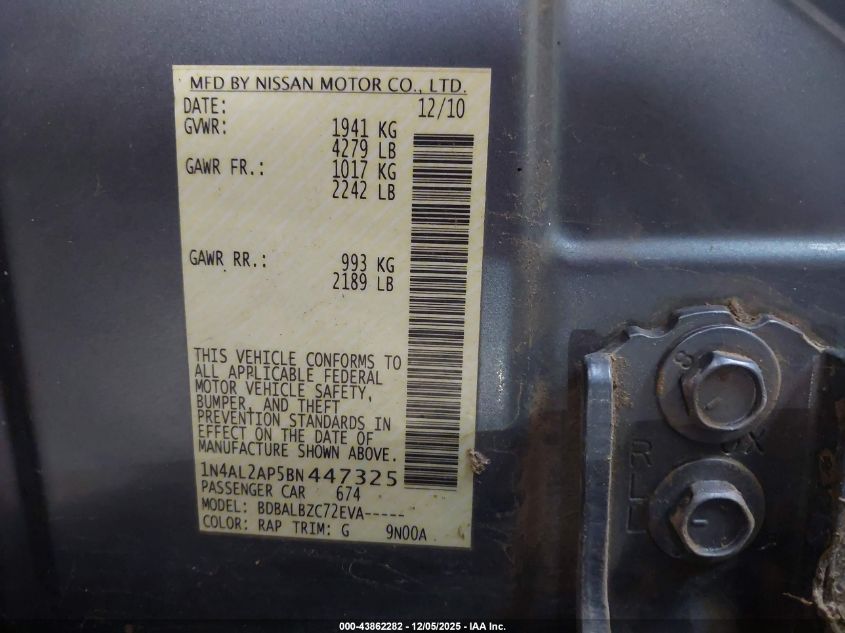 2011 NISSAN ALTIMA 2011 року Бензин, 2.5, Передний привод, vin - 1N4AL2AP5BN447325 из США