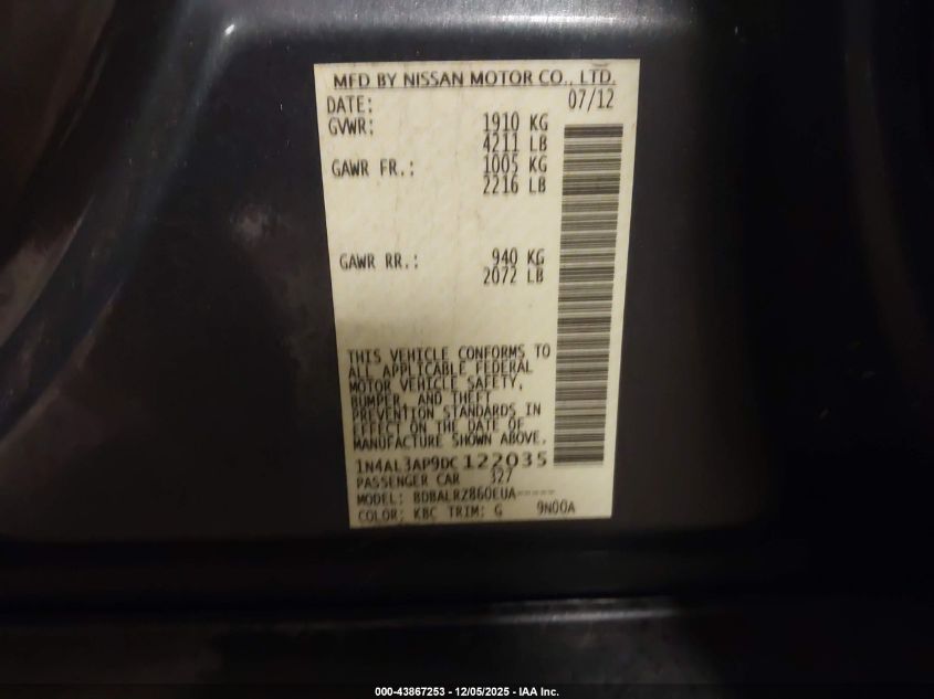 2013 NISSAN ALTIMA 2013 року Бензин, 2.5, Передний привод, vin - 1N4AL3AP9DC122035 из США