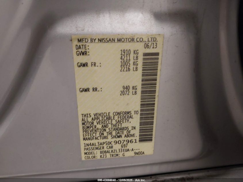 2013 NISSAN ALTIMA 2013 року Бензин, 2.5, Передний привод, vin - 1N4AL3AP5DC907961 из США