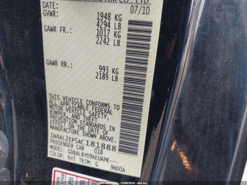 2010 NISSAN ALTIMA 2010 року Бензин, 2.5, Передний привод, vin - 1N4AL2EP5AC181888 из США