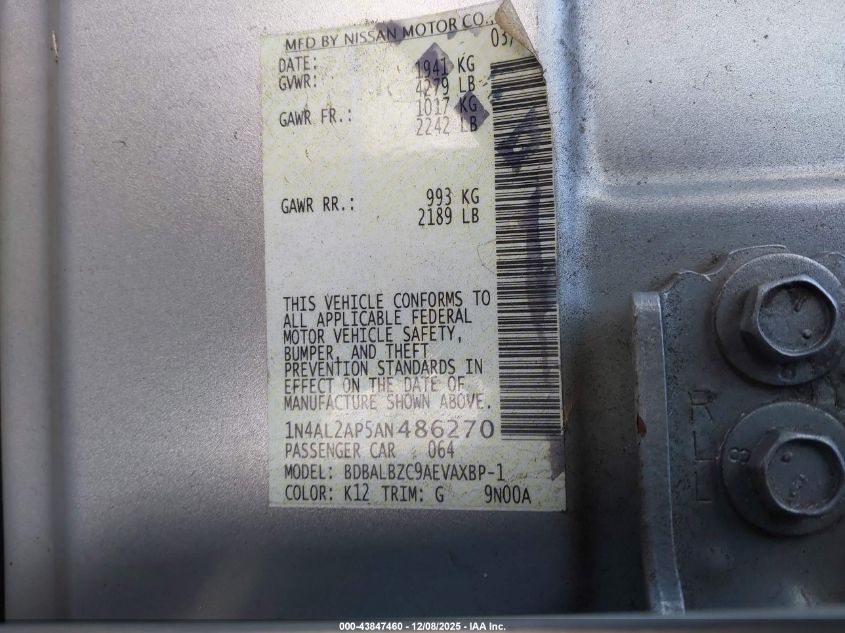 2010 NISSAN ALTIMA 2010 року Бензин, 2.5, Передний привод, vin - 1N4AL2AP5AN486270 из США