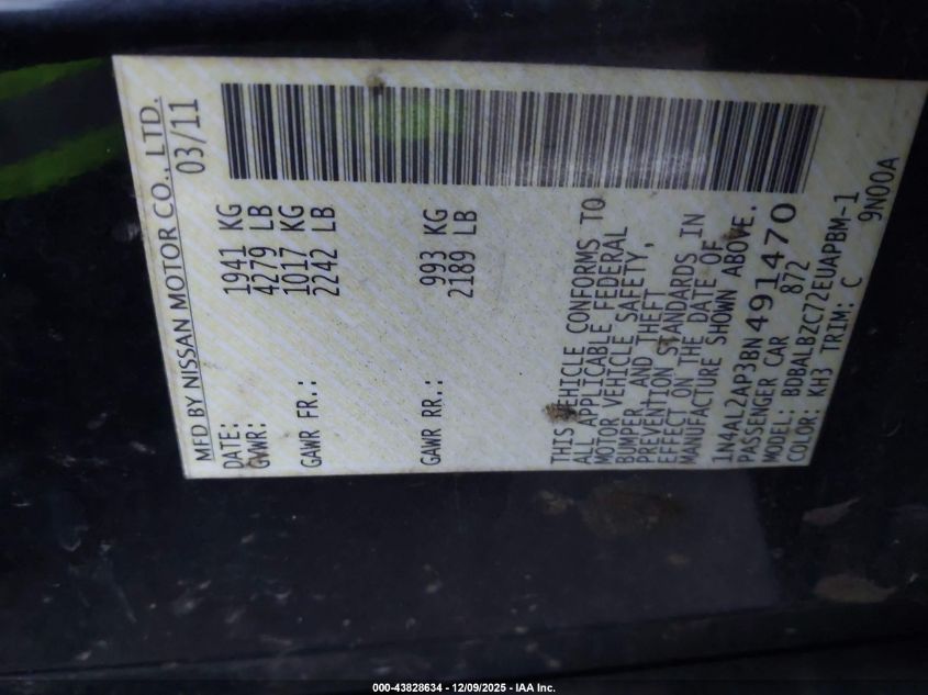 2011 NISSAN ALTIMA 2011 року Бензин, 2.5, Передний привод, vin - 1N4AL2AP3BN491470 из США