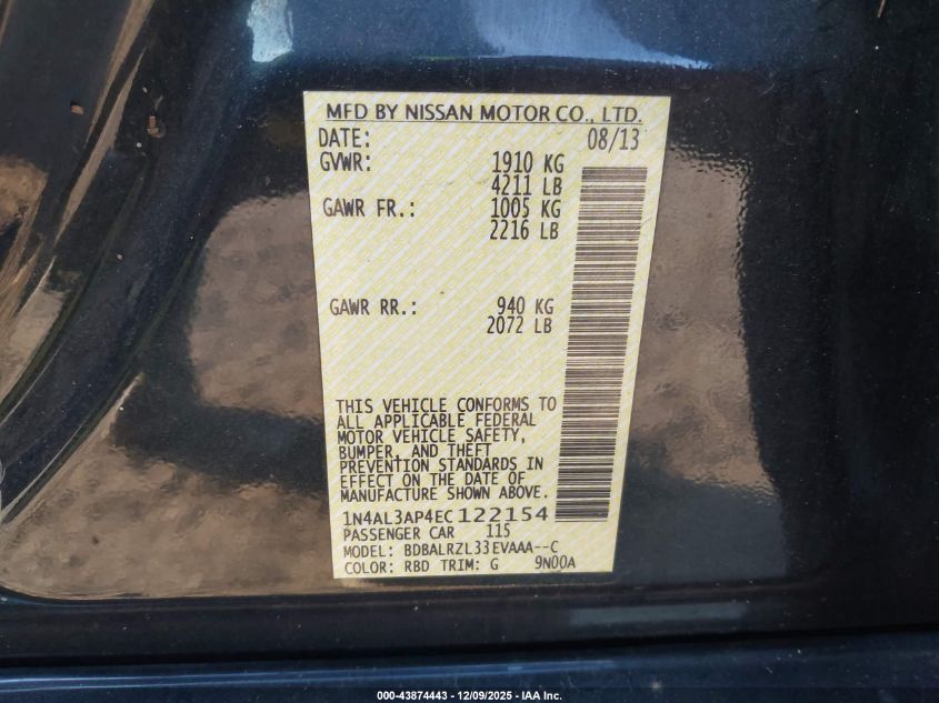 2014 NISSAN ALTIMA 2014 року Бензин, 2.5, Передний привод, vin - 1N4AL3AP4EC122154 из США