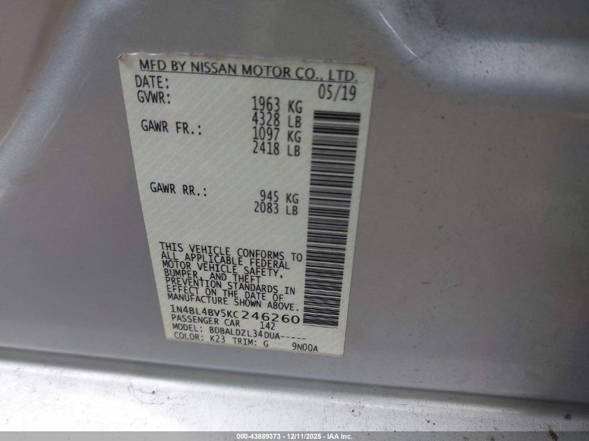 2019 NISSAN ALTIMA 2019 року Бензин, 2.5, Передний привод, vin - 1N4BL4BV5KC246260 из США