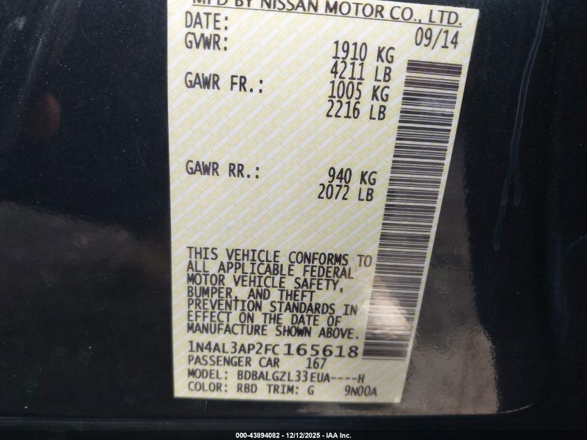 2015 NISSAN ALTIMA 2015 року Бензин, 2.5, Передний привод, vin - 1N4AL3AP2FC165618 из США