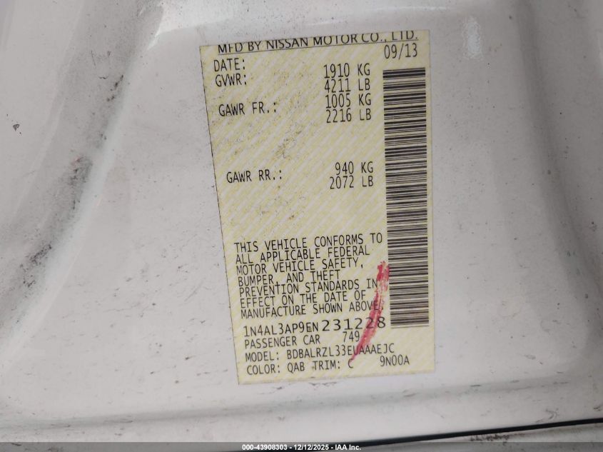 2014 NISSAN ALTIMA 2014 року Бензин, 2.5, Передний привод, vin - 1N4AL3AP9EN231228 из США
