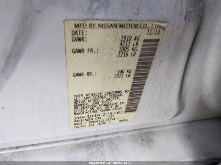 2015 NISSAN ALTIMA 2015 року Бензин, 2.5, Передний привод, vin - 1N4AL3AP1FC225761 из США