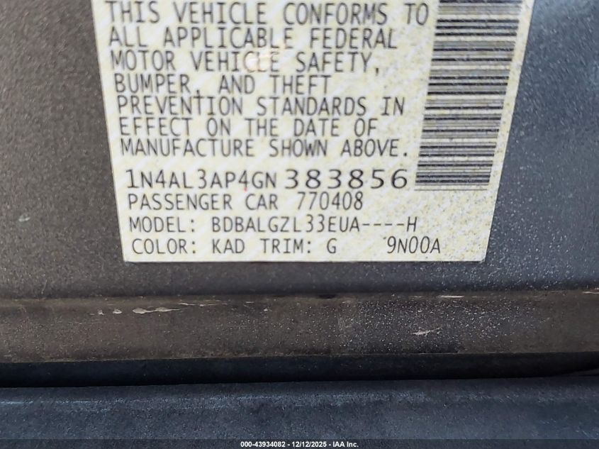 2016 NISSAN ALTIMA 2016 року Бензин, 2.5, Передний привод, vin - 1N4AL3AP4GN383856 из США