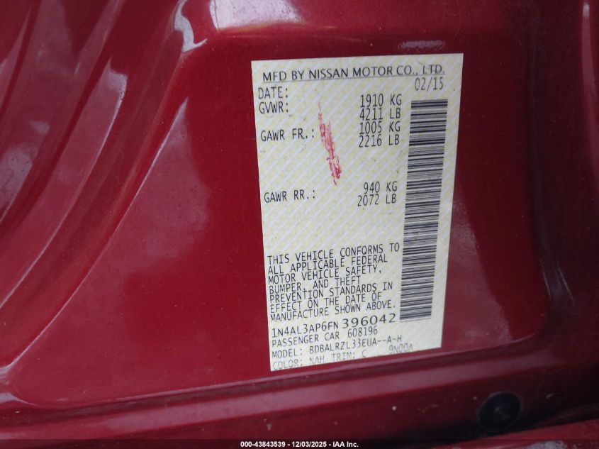 2015 NISSAN ALTIMA 2015 року Бензин, 2.5, Передний привод, vin - 1N4AL3AP6FN396042 из США