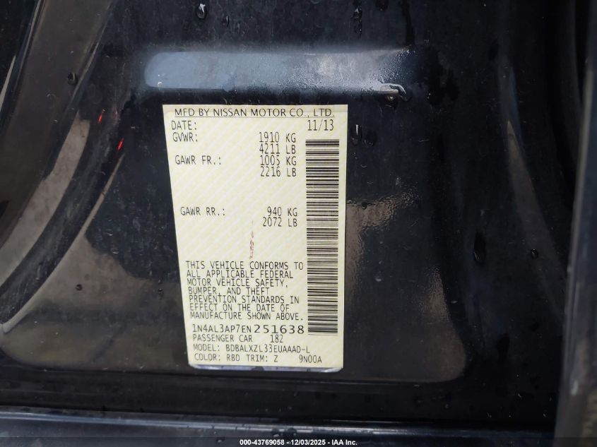 2014 NISSAN ALTIMA 2014 року Бензин, 2.5, Передний привод, vin - 1N4AL3AP7EN251638 из США