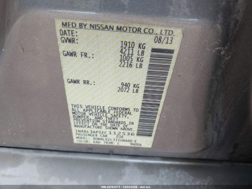 2014 NISSAN ALTIMA 2014 року Бензин, 2.5, Передний привод, vin - 1N4AL3AP1EC112536 из США