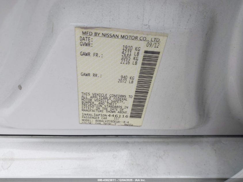 2013 NISSAN ALTIMA 2013 року Бензин, 2.5, Передний привод, vin - 1N4AL3AP1DN446116 из США