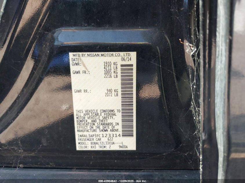 2015 NISSAN ALTIMA 2015 року Бензин, 2.5, Передний привод, vin - 1N4AL3AP3FC123314 из США
