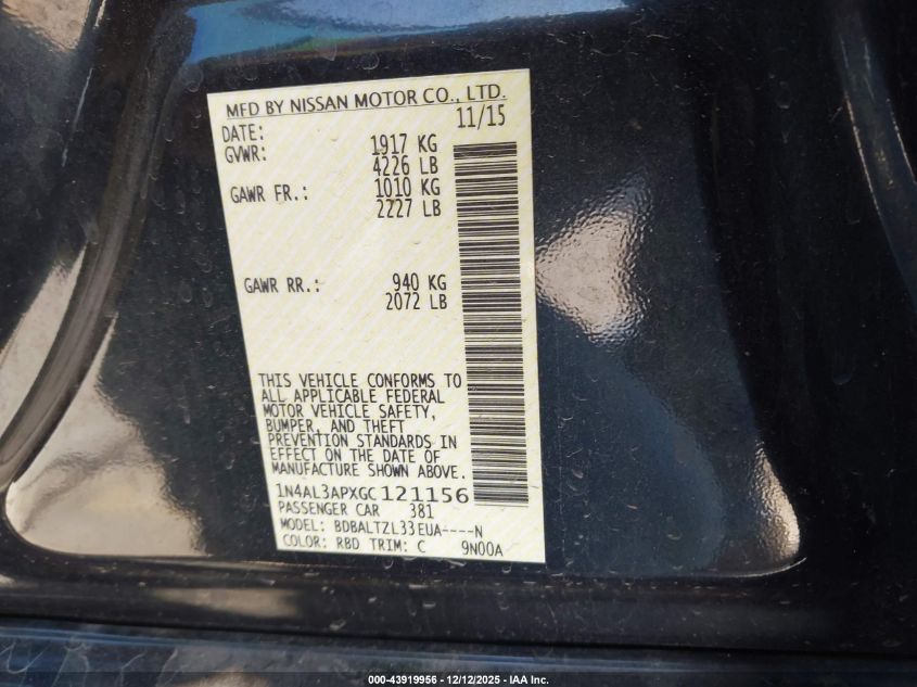 2016 NISSAN ALTIMA 2016 року Бензин, 2.5, Передний привод, vin - 1N4AL3APXGC121156 из США