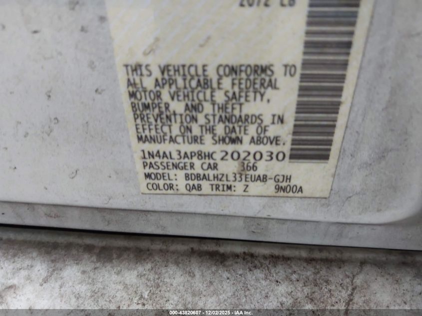 Цвет БелыйЦилиндры 4Привод Передний приводVIN 1N4AL3AP8HC202030Состояние Заводится и едет (проверено)Повреждения Правая сторона AutoRIA