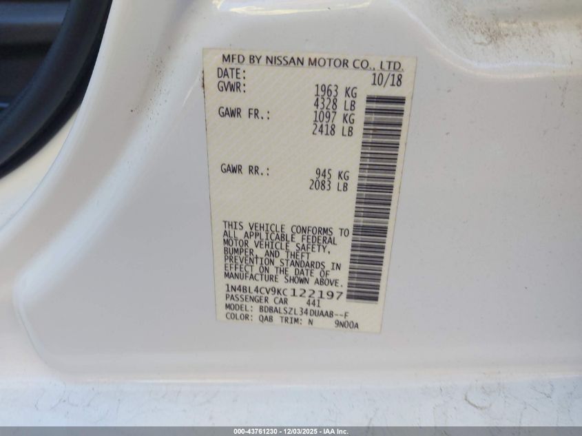 2019 NISSAN ALTIMA 2019 року Бензин, 2.5, Передний привод, vin - 1N4BL4CV9KC122197 из США
