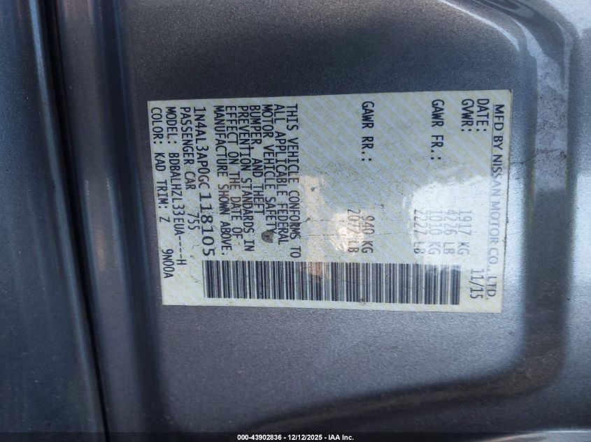 2016 NISSAN ALTIMA 2016 року Бензин, 2.5, Передний привод, vin - 1N4AL3AP0GC118105 из США