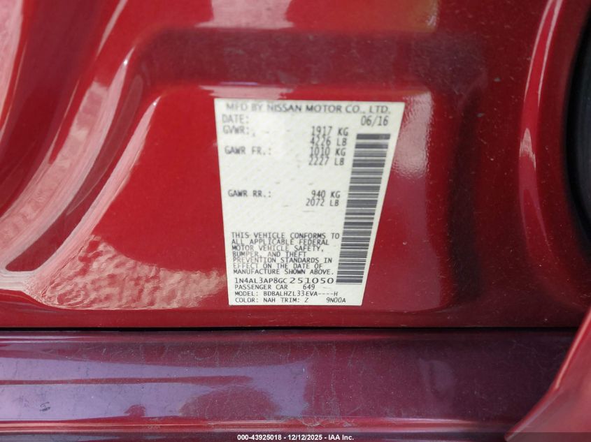 2016 NISSAN ALTIMA 2016 року Бензин, 2.5, Передний привод, vin - 1N4AL3AP8GC251050 из США
