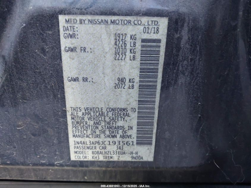 2018 NISSAN ALTIMA 2018 року Бензин, 2.5, Передний привод, vin - 1N4AL3AP6JC193561 из США