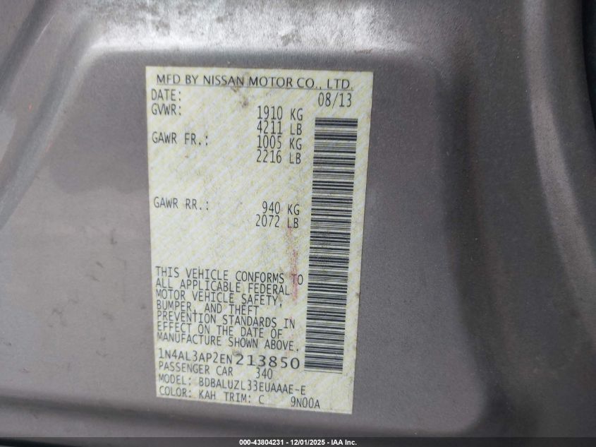 2014 NISSAN ALTIMA 2014 року Бензин, 2.5, Передний привод, vin - 1N4AL3AP2EN213850 из США