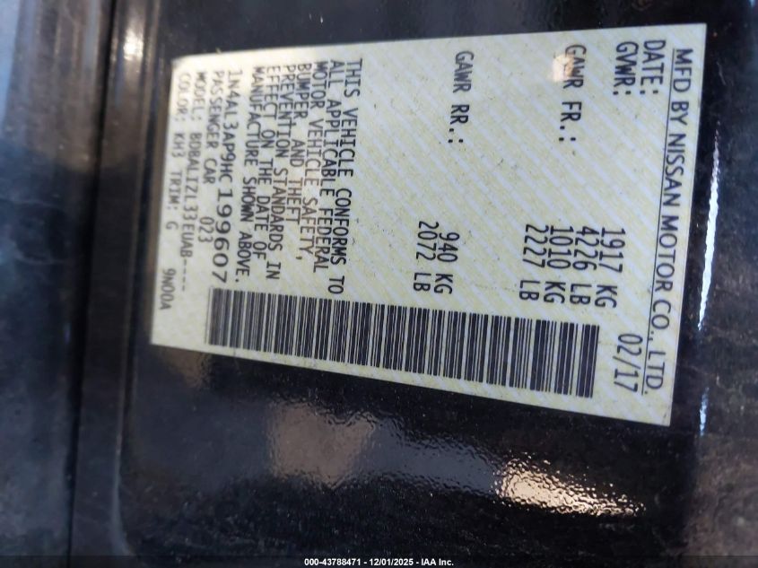 2017 NISSAN ALTIMA 2017 року Бензин, 2.5, Передний привод, vin - 1N4AL3AP9HC199607 из США