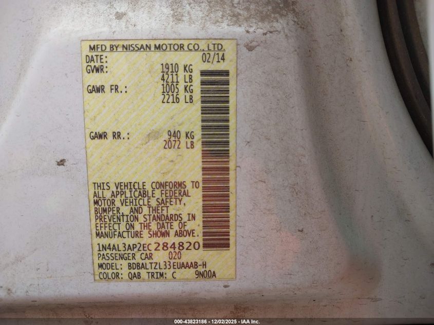 2014 NISSAN ALTIMA 2014 року Бензин, 2.5, Передний привод, vin - 1N4AL3AP2EC284820 из США