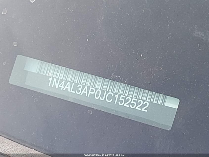 Цвет ЧерныйЦилиндры 4Привод Передний приводVIN 1N4AL3AP0JC152522Состояние Заводится и едет (проверено)Повреждения Передняя или задняя AutoRIA