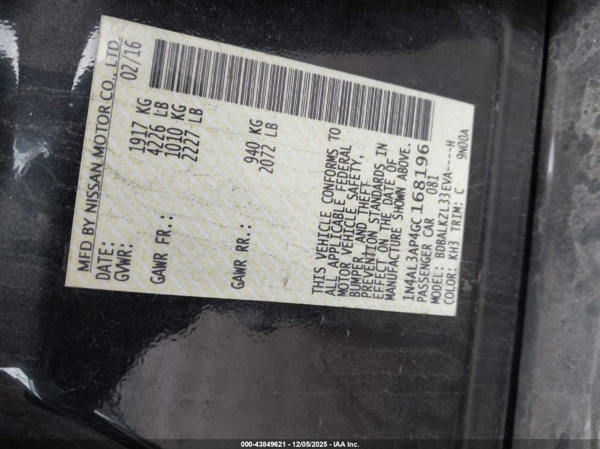 2016 NISSAN ALTIMA 2016 року Бензин, 2.5, Передний привод, vin - 1N4AL3AP4GC168196 из США