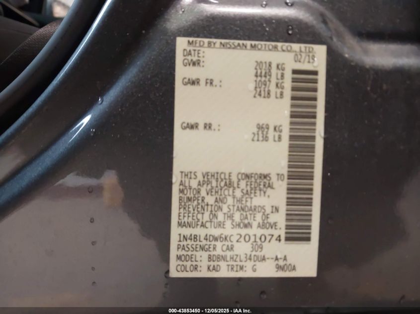 2019 NISSAN ALTIMA 2019 року Бензин, 2.5, Полный привод, vin - 1N4BL4DW6KC201074 из США