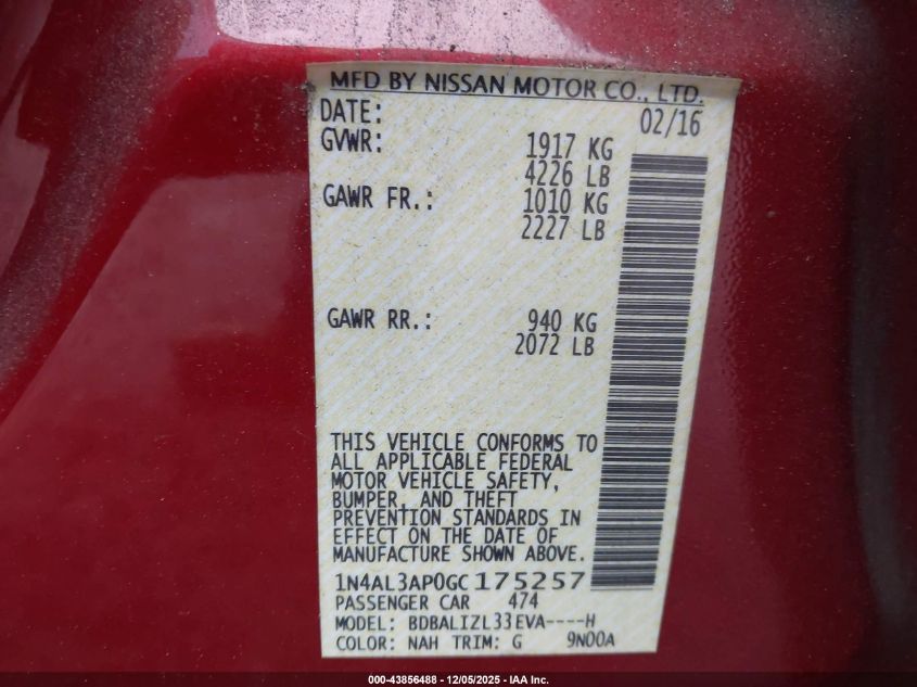 2016 NISSAN ALTIMA 2.5