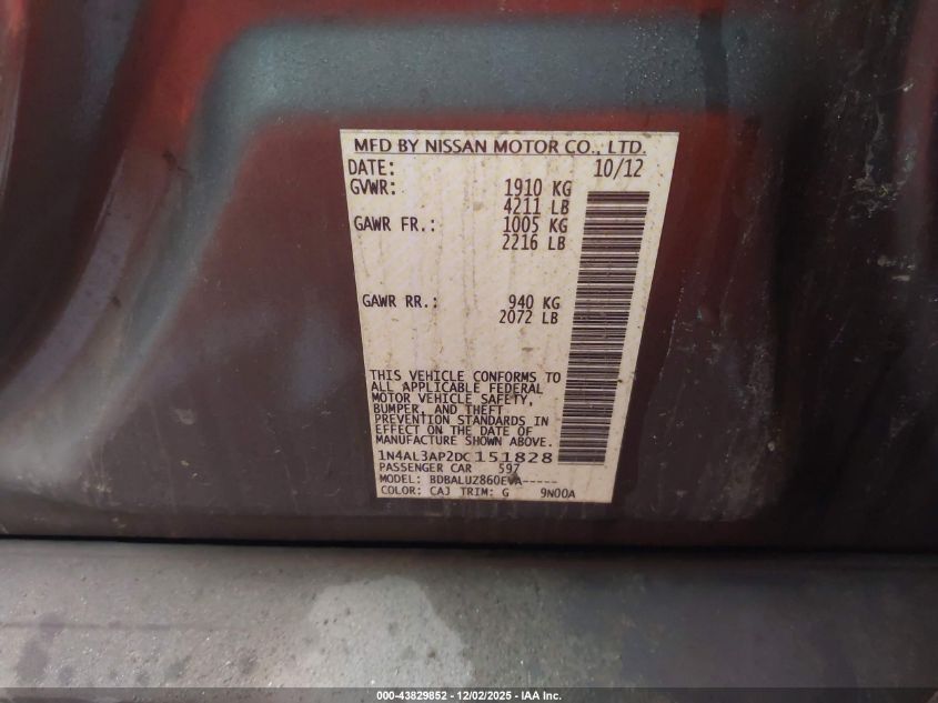 2013 NISSAN ALTIMA 2013 року Бензин, 2.5, Передний привод, vin - 1N4AL3AP2DC151828 из США