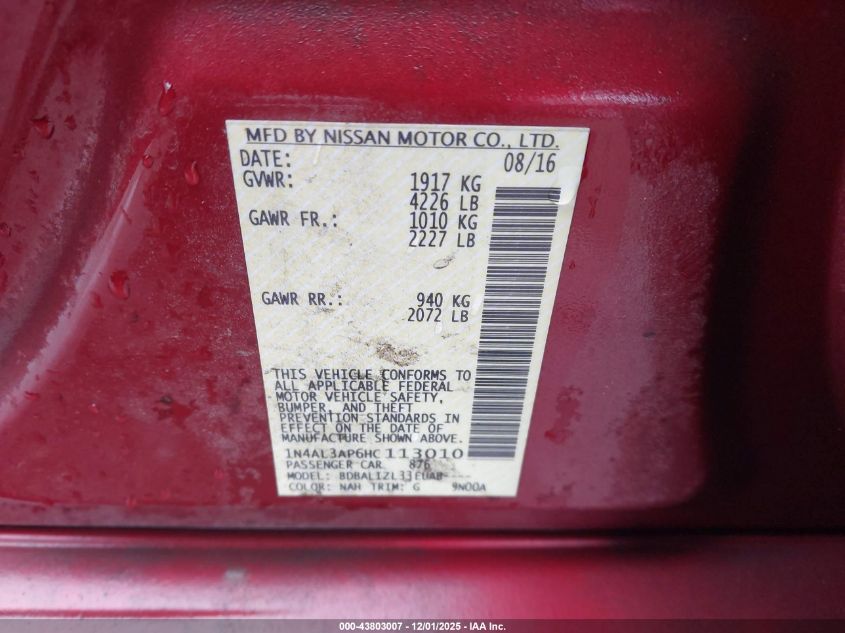 2017 NISSAN ALTIMA 2017 року Бензин, 2.5, Передний привод, vin - 1N4AL3AP6HC113010 из США