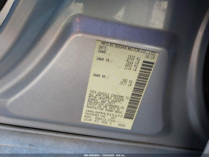 2015 NISSAN ALTIMA 2015 року Бензин, 2.5, Передний привод, vin - 1N4AL3AP9FN315177 из США