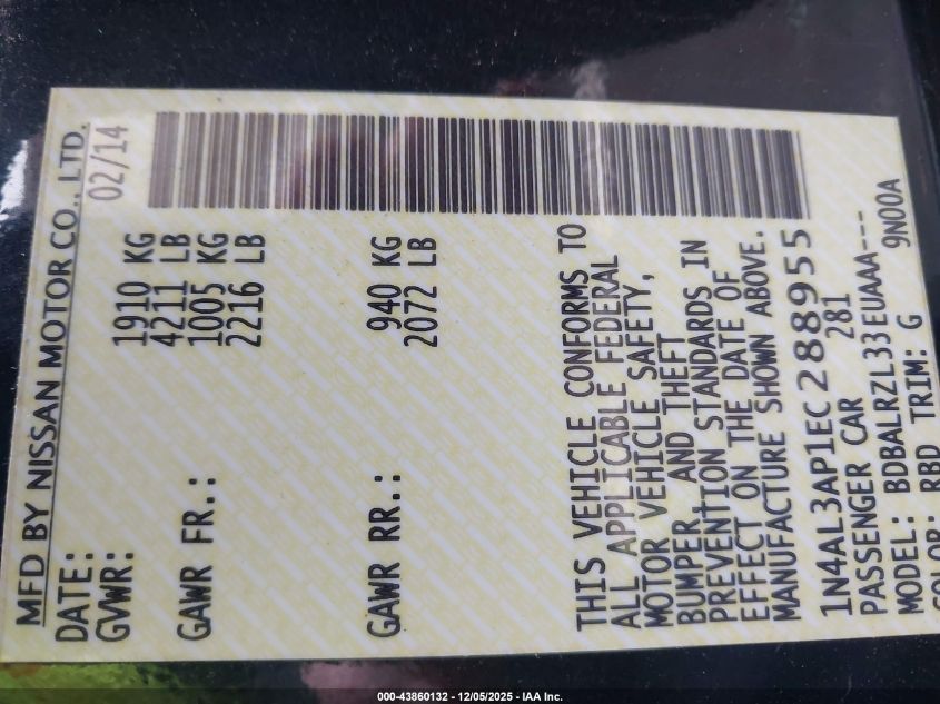 2014 NISSAN ALTIMA 2014 року Бензин, 2.5, Передний привод, vin - 1N4AL3AP1EC288955 из США