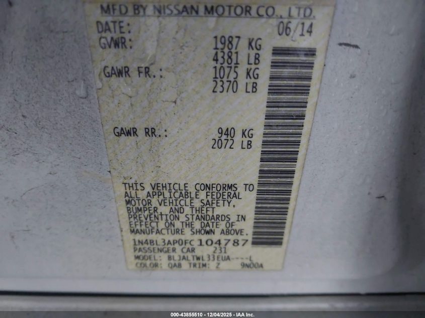 2015 NISSAN ALTIMA 2.5