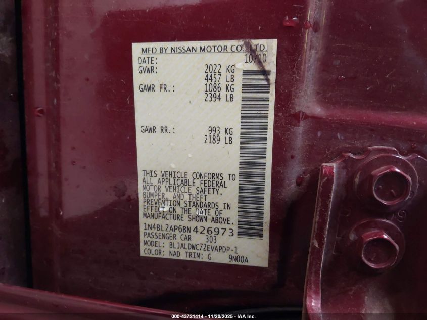 2011 NISSAN ALTIMA 2011 року Бензин, 3.5, Передний привод, vin - 1N4BL2AP6BN426973 из США