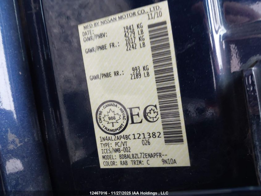 2011 NISSAN ALTIMA 2011 року Бензин, , Передний привод, vin - 1N4AL2AP4BC121382 из США