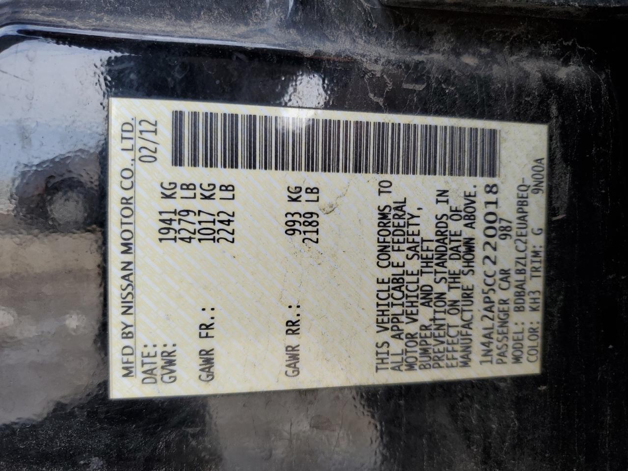 2012 NISSAN ALTIMA BASE