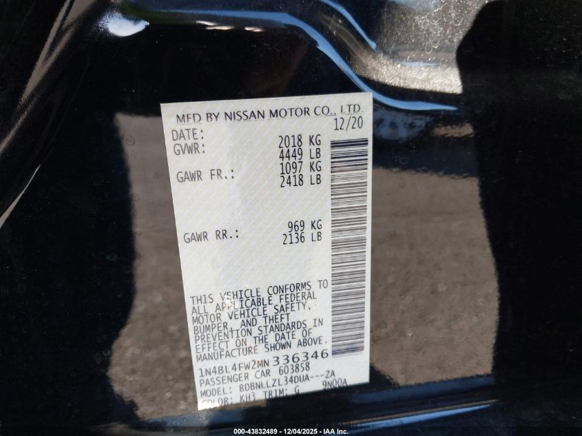 2021 NISSAN ALTIMA 2021 року Бензин, 2.5, Полный привод, vin - 1N4BL4FW2MN336346 из США