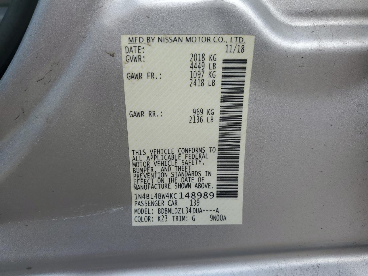 2019 NISSAN ALTIMA 2019 року Бензин, 2.5, Полный привод, vin - 1N4BL4BW4KC148989 из США