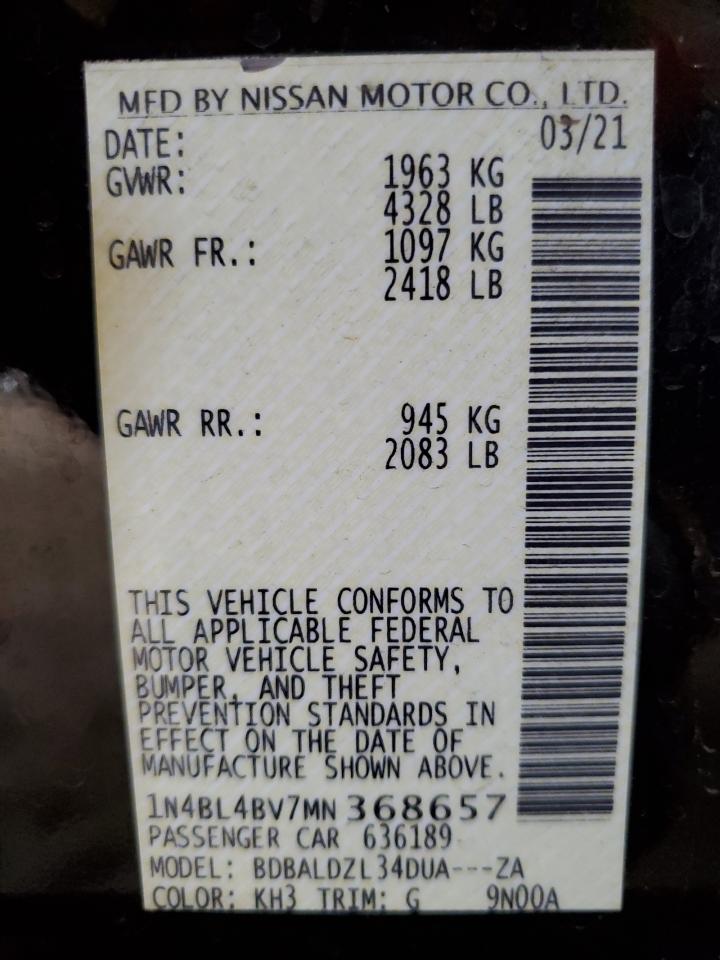 2021 NISSAN ALTIMA 2021 року Бензин, 2.5, , vin - 1N4BL4BV7MN368657 из США