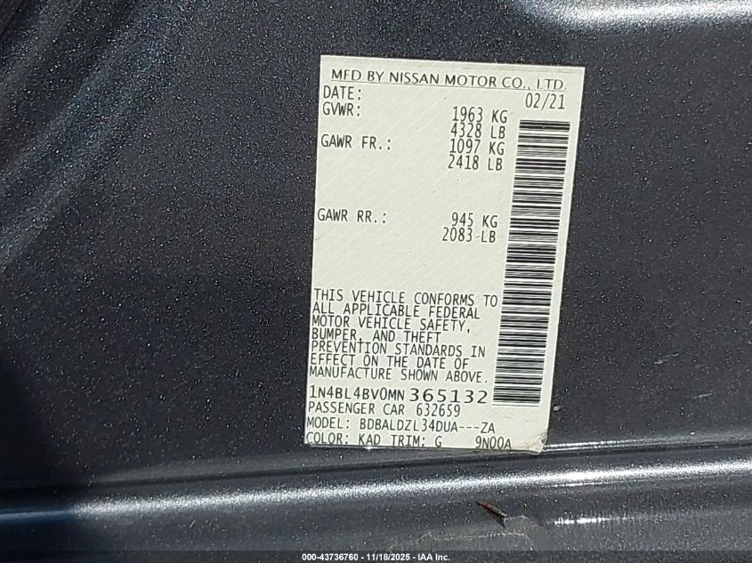 2021 NISSAN ALTIMA 2021 року Бензин, 2.5, Передний привод, vin - 1N4BL4BV0MN365132 из США