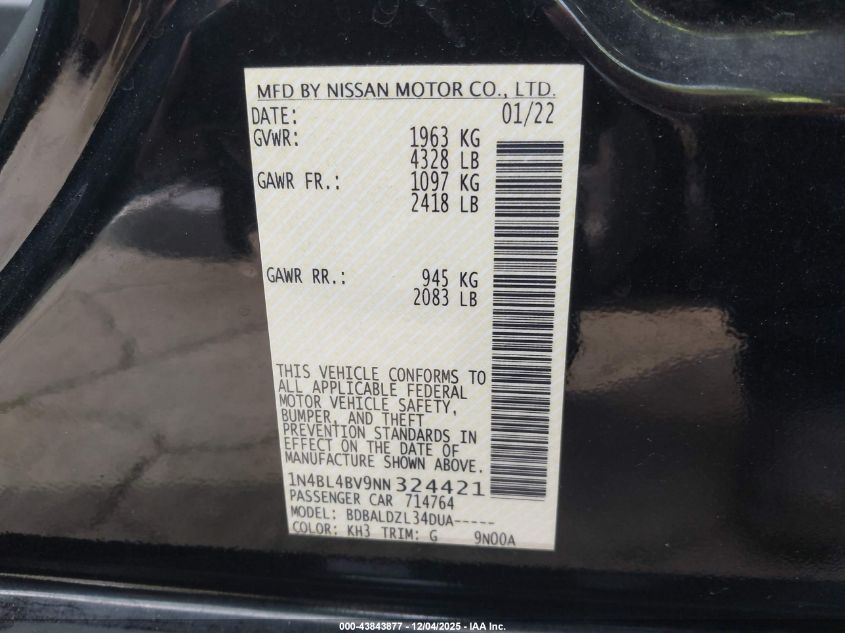 2022 NISSAN ALTIMA 2022 року Бензин, 2.5, Передний привод, vin - 1N4BL4BV9NN324421 из США