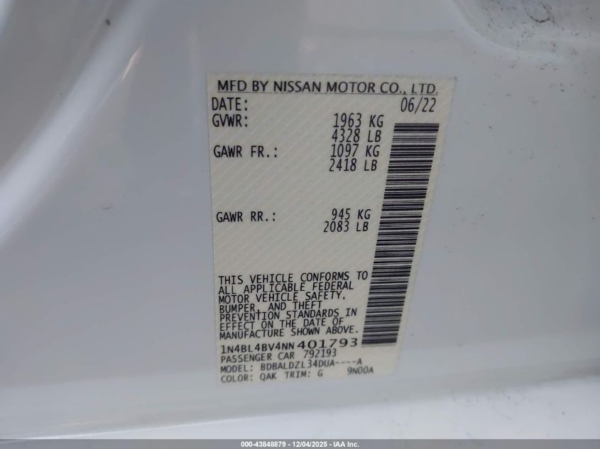 2022 NISSAN ALTIMA 2022 року Бензин, 2.5, Передний привод, vin - 1N4BL4BV4NN401793 из США