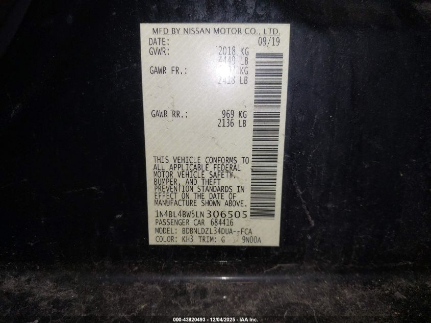 2020 NISSAN ALTIMA 2020 року Бензин, 2.5, Полный привод, vin - 1N4BL4BW5LN306505 из США