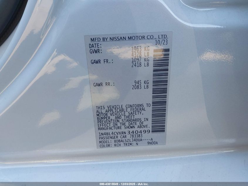 2024 NISSAN ALTIMA 2024 року Бензин, 2.5, Передний привод, vin - 1N4BL4CVXRN340499 из США